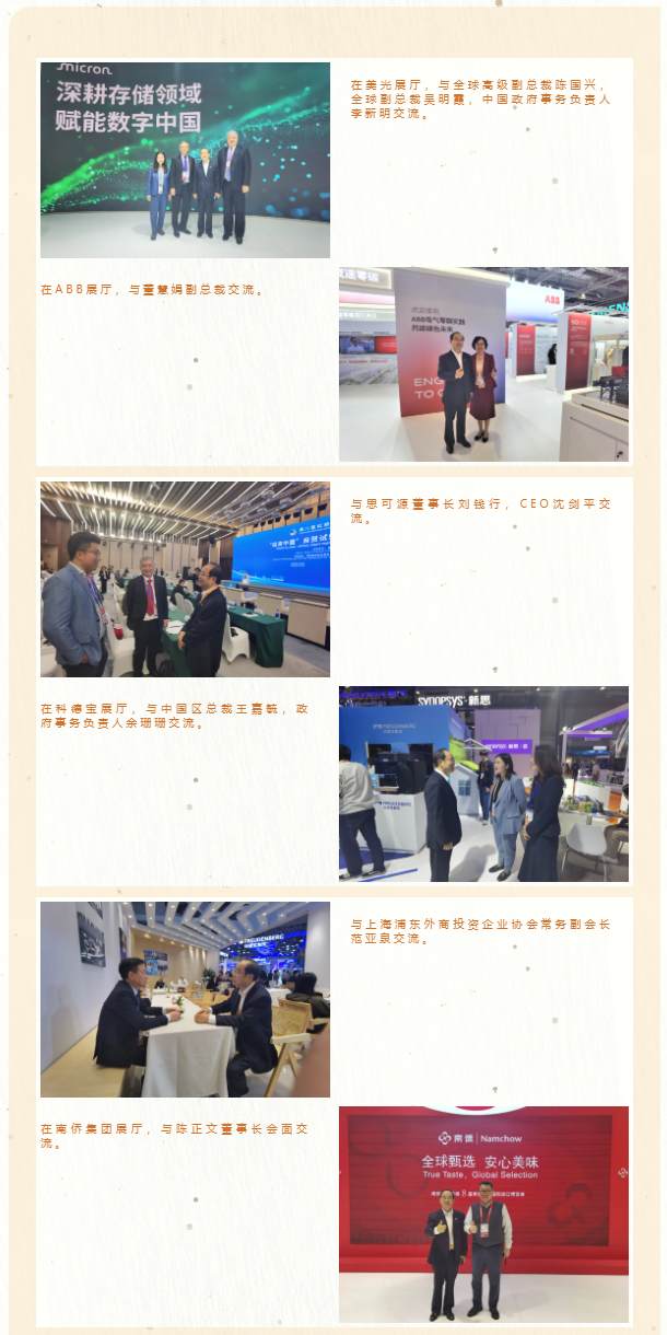 第八届中国国际进口博览会已于11月5日—10日在上海胜利闭幕。展会期间,协会专家委宋刚主任委员受邀出席“外资企业融入双循环论坛”、“投资中国”自贸试验区专场推介活动等专题活动,与中国外资协会、上海外资协会、浦东外资协会等负责人深入沟通,参访部分跨国公司展厅并与公司负责人会面交流。协会承办重庆—德国杜塞尔多夫双城联展,并邀请部分会员企业负责人出席“投资重庆·渝见商机”重庆投资贸易合作推介会。匡衡秘书长、方磊助理秘书长陪同。