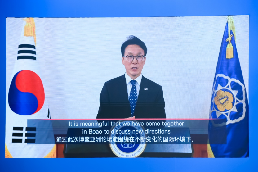 金民锡对博鳌亚洲论坛2026年年会的召开表示衷心祝贺。他表示,应从创新、制度、互联三个方向推进合作:在人工智能等前沿领域开展国际合作;通过RCEP、APEC等平台提升贸易确定性与韧性;引入绿色转型等新议题推动合作多元化。韩国将积极推动与中国的产业和投资合作,共同为世界经济发展作出贡献。