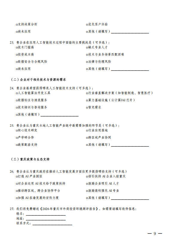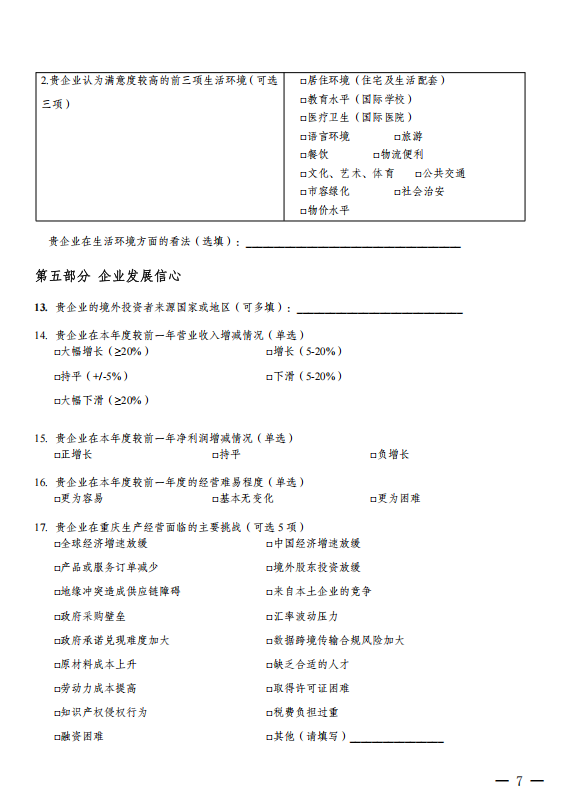 重庆市商务委员会关于开展外商投资环境调研的通知