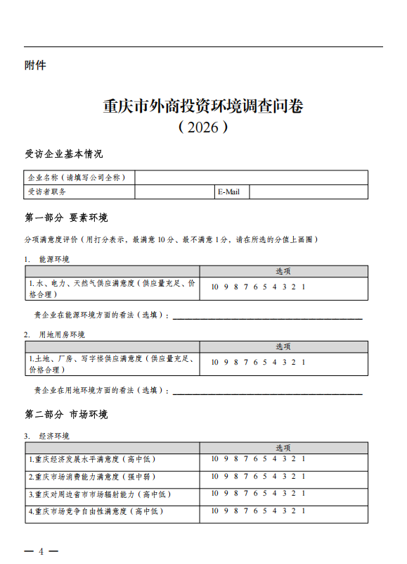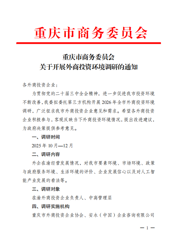 重庆市商务委员会关于开展外商投资环境调研的通知